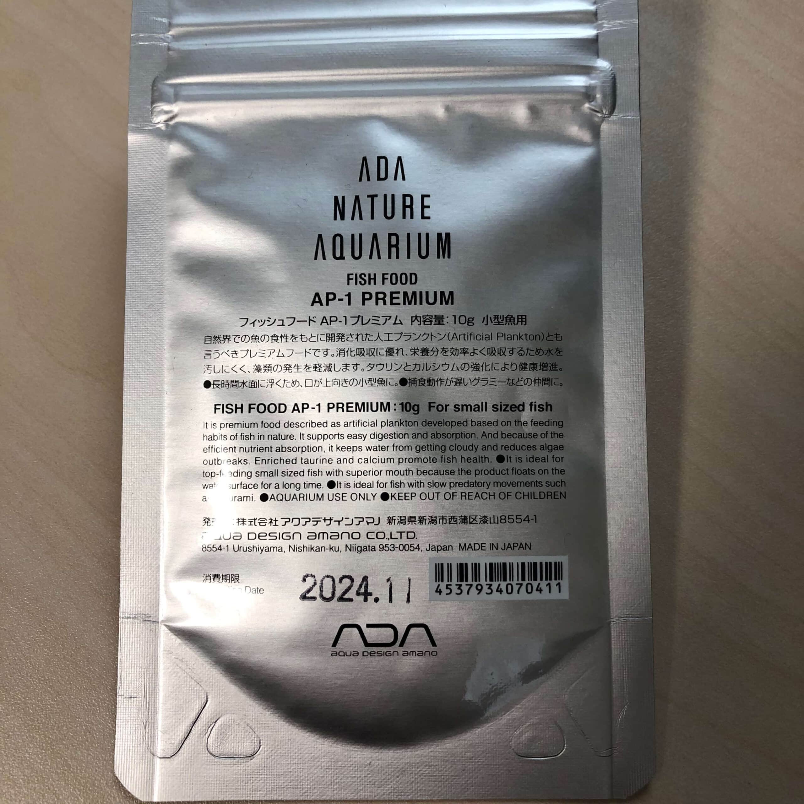 すべての餌を試した訳ではないので最適解かはわかりませんが、我が家のハナビはこれならすんなり食べてくれるという餌がこちらのADA社製「 AP-1 PREMIUM 」でした!