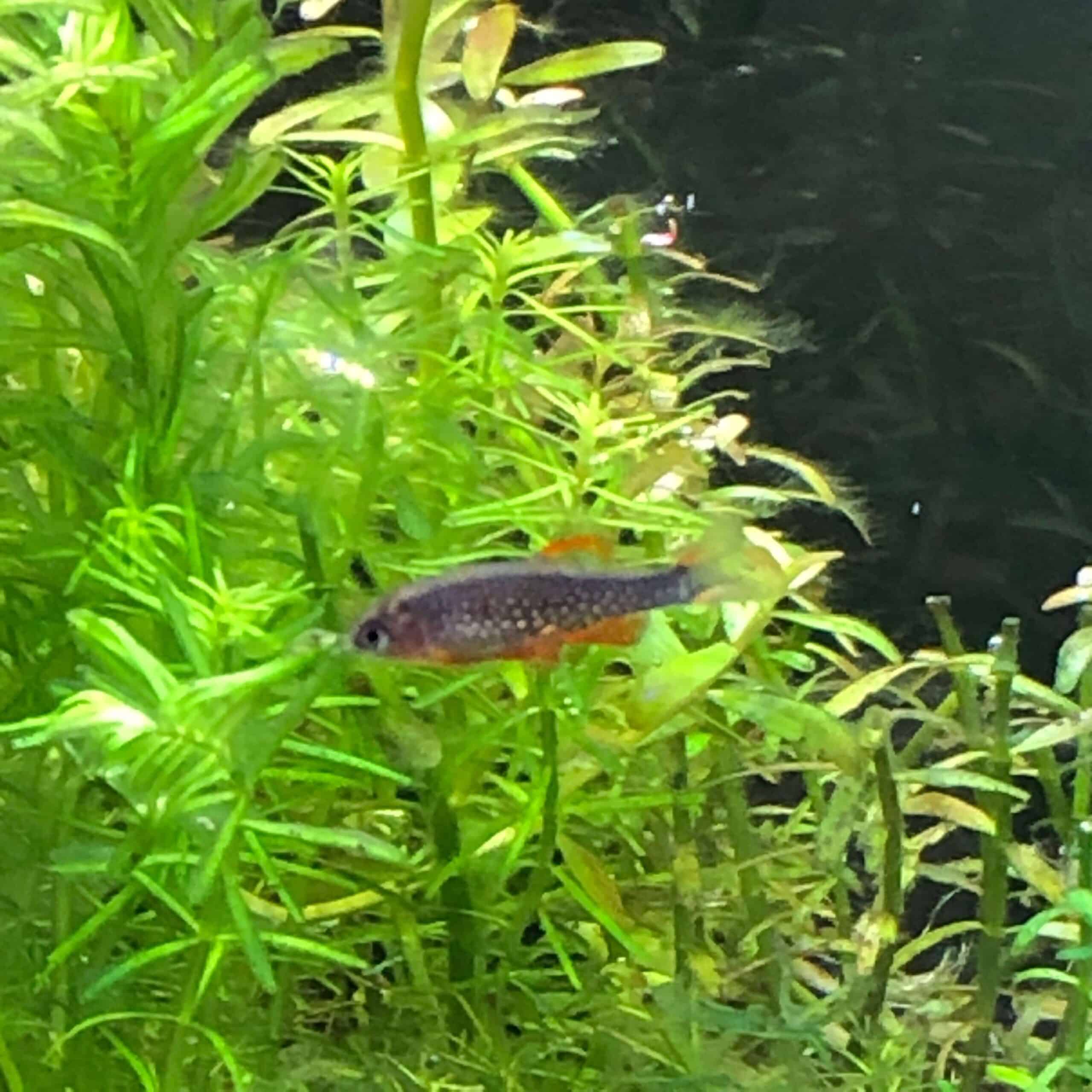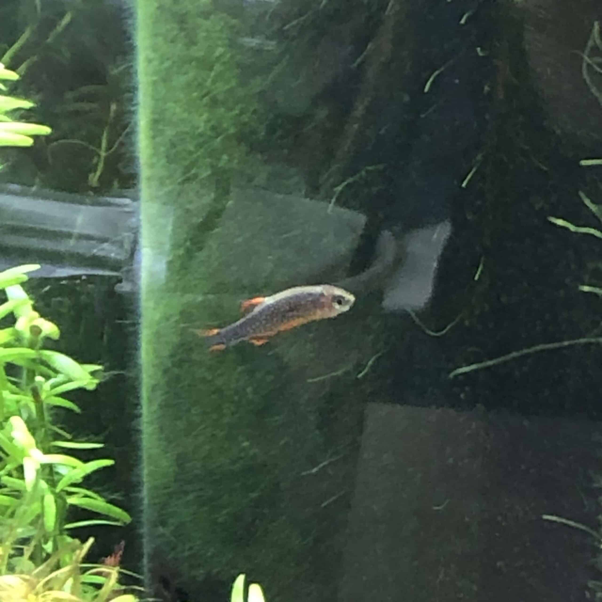 ミクロラスボラ・ハナビは臆病な性格のようで水槽に顔や手を近づけるとさーっと逃げていきます。これは小型魚全般に言えることかもしれないですね。