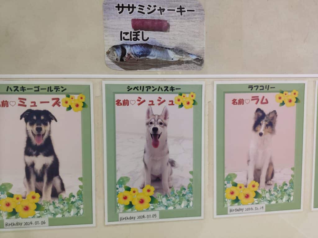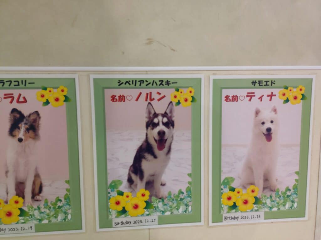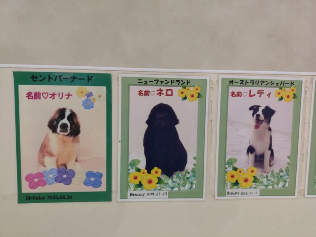 一覧で写真が貼ってありました。最年長で2歳くらい、最年少は4~6か月くらいとのことでした。みんなかわいいね。