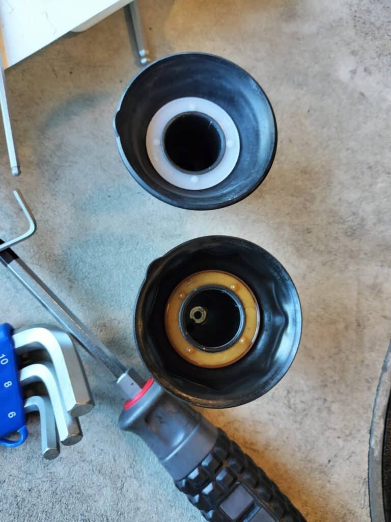 古い奴はプラスチックの部分が変色して黄色くなっています。少しヒビ的なしわっぽいものもあるので、交換してよかったかも。ゴム部分も薄くなっている感じがしました。これでばっちり。