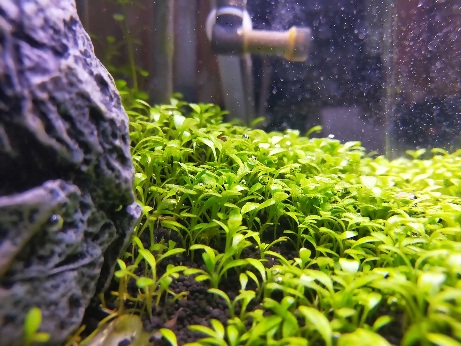 マツモとウィローモスがポツポツと気泡を上げています。添加前よりもきれいに育ちます。